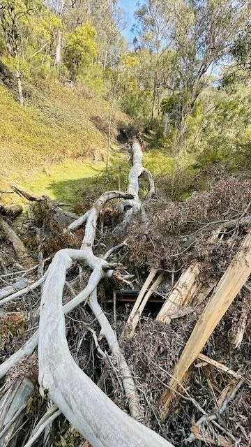 Pompey Pillar Ck bridge damaged by a fallen tree
